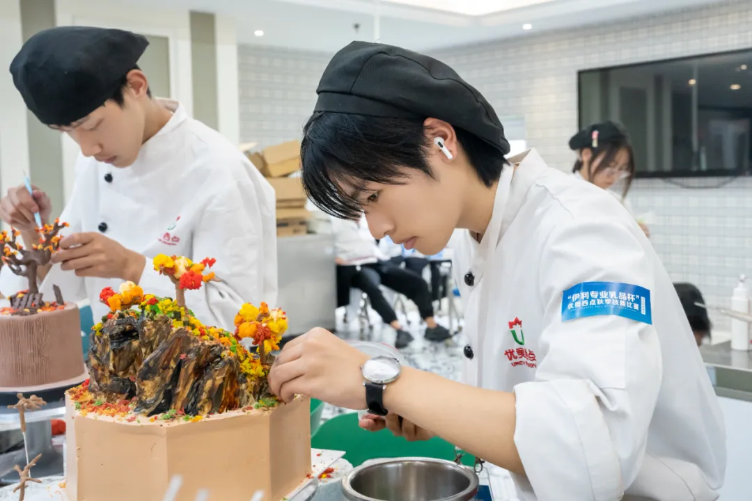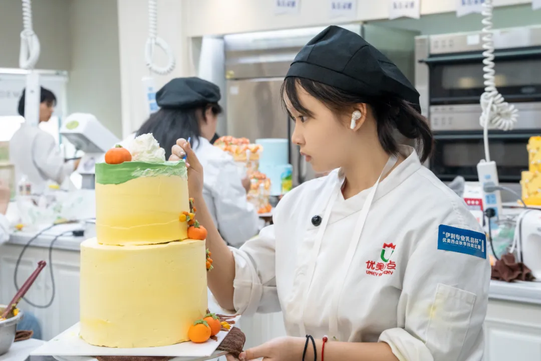 成都优美西点烘焙学校校长,曾校上台致辞! 首先对本次比赛独家冠名赞助伊利乳品华西区王总、川藏区潘总、产品研发工程师张老师、市场负责人谢经理的到来,表示热烈欢迎~ 曾校表示:伊利作为专业乳品中国领导者,一直致力于提供健康、优质的产品。今天与伊利共同举办技能大赛,不仅是对西点教育事业的支持,更是对新一代西点人才培养的认可与鼓励! 同时,技能赛是学校推动实践教学,提升专业技能的重要平台,希望同学们能珍惜此次参赛机会,充分展示自己。比赛短暂,学习与成长是一生的,无论成绩如何,她都希望同学们保持平常心,要继续努力,不断进步~ 谢经理针对伊利品牌企业文化,旗下东方灵感淡奶油、环球甄选稀奶油等多款明星产品原材料产品进行了简单介绍!她希望同学们能够凭借优秀的专业能力,多元化地将其运用在比赛制作中!好原料,成就好味道!希望伊利产品能为选手们精致美味的作品锦上添花! 二、直击比赛现场 比赛正式拉开帷幕!裁判长张老师及其他裁判员现场宣誓,他们将秉承着公平公正公开的行业水平,对本次比赛成果进行打分! 随后,裁判老师们宣读了比赛流程、比赛规则、考评指标、注意事项...随即比赛实操正式开始! 本次总决赛共计30人左右参赛,参赛选手将以极具观赏性和技术性的裱花蛋糕类目、流行西点类目进行限时比赛!各位参赛选手将以扎实的基本功和良好的专业素养在比赛中各展所长。 台上一分钟,台下十年功!此次比赛既有学了数月的经验选手,也有刚入学几周的萌新选手,但大家都认真专注!用心展示自己精湛娴熟的蛋糕西点创作技术,看看大家的操作气场,在比赛中游刃有余的样子,可谓是势均力敌~ 大赛不仅是一次展示教学成果的舞台,更是一次实战演练的绝佳机会。可以通过比赛检验教学细节,磨练学生技术和心态。 这场以赛代练的契机,不仅是一次展示个人才华的机会,更是一次超越自我、精益求精的历练。同学们将在比赛中不断挑战自我,为未来的烘焙事业奠定坚实基础。 三、参赛选手作品展示 经过激烈角逐,参赛选手们经过日常努力地学习,辛勤地课后训练,在此刻交出来一份完美的答卷!欣赏一下参赛选手们的作品吧~ 技术与创意齐发,美味与颜值同在。随着一个个精致作品的展出,学员们扎实的蛋糕技术与创意天赋展露无遗。每位参赛选手都是自己的冠军,因为大家都全力以赴地进行了挑战自我的创作。 四、颁奖仪式 比赛是一种经历,成绩是一种收获! 裁判组的老师们本着公平公正的原则,结合裱花蛋糕、流行西点项目的综合评分,评选出冠军、季军! 图|冠军 刘意霖 图|亚军 洛桑赤列 图|季军 王婉湘 恭喜!恭喜!再接再厉 赛技能·展风采·促成长 我校定期举行技能竞赛 丰富同学们的校园生活 增加同学们的自主创新能力 愿本次参赛学员们 都能在这场比赛中有所收获 本次比赛完美结束,我们下场赛事再见啦~