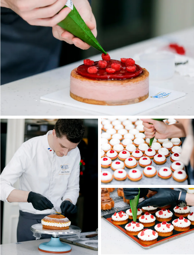 制作过程中,Alexis 手法娴熟,每个制作步骤都讲得细致入微,无论是选材、制作手法,还是甜品造型,无不体现了他对烘焙艺术的深厚造诣与追求~